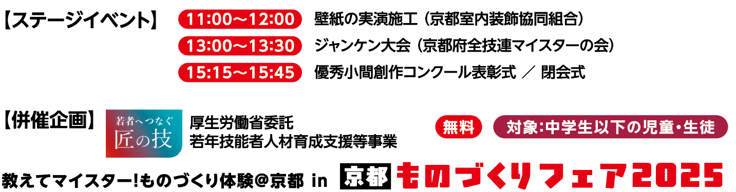 ※「教えてマイスター!ものづくり体験@京都」は先着順に受付を行います。詳しくは、当日受付でお尋ねください。